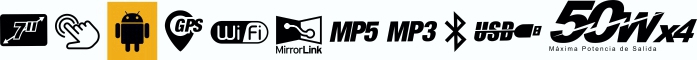 - Salida de alta potencia: 50Wx4 pico y 25Wx4 RMS Radio AM / FM